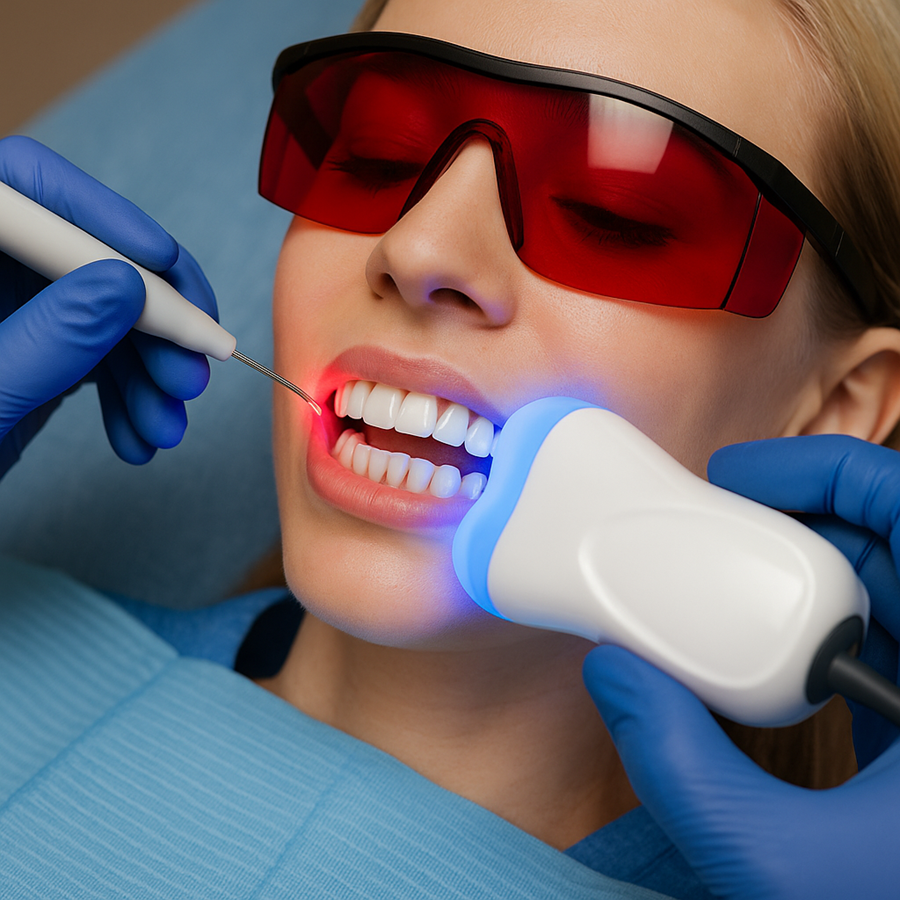 ابتدا اسکن سه‌بعدی داخل دهانی رنگ اولیه مینای شما و قرینگی لثه را ثبت می‌کند؛ سپس متخصص زیبایی، طراحی دیجیتال لبخند را بر اساس فرم چهره اجرا کرده و پیش‌نمایش نهایی بلیچینگ دندان و کانتورینگ لثه را روی مانیتور به شما نشان می‌دهد. لیزر کانتورینگ، با دقت میکرونی، بافت اضافی لثه را برداشته و لبه‌ای صاف و متناسب ایجاد می‌کند؛ در همان جلسه، ژل بلیچینگ با لایت کیور LED فعال شده و سفیدی دندان تا هشت درجه افزایش می‌یابد.